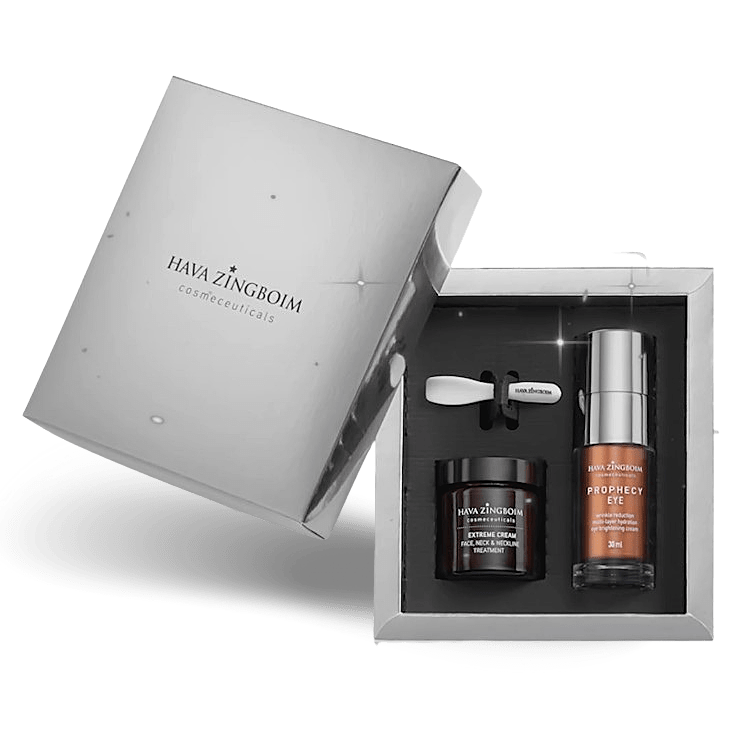 הערכה נותנת מענה לאזור הפנים, העיניים, הצוואר והמחשוף באריזה אחת, אלגנטית ומלאת גלאם.